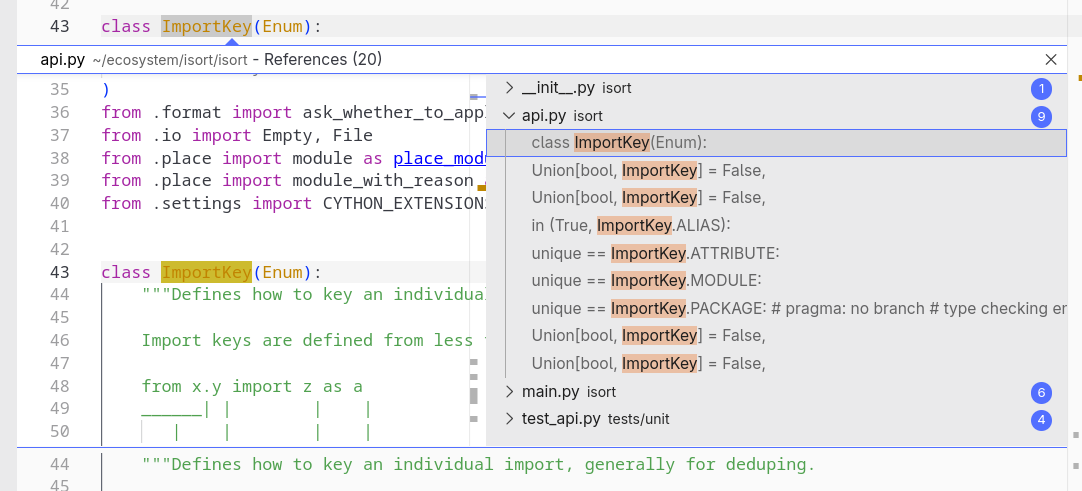 Personwhen invoked on a variableuser: Person. - Find all references: Find every usage of a function, class, or variable across your entire workspace.